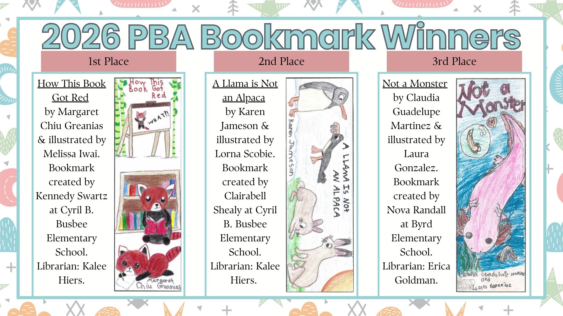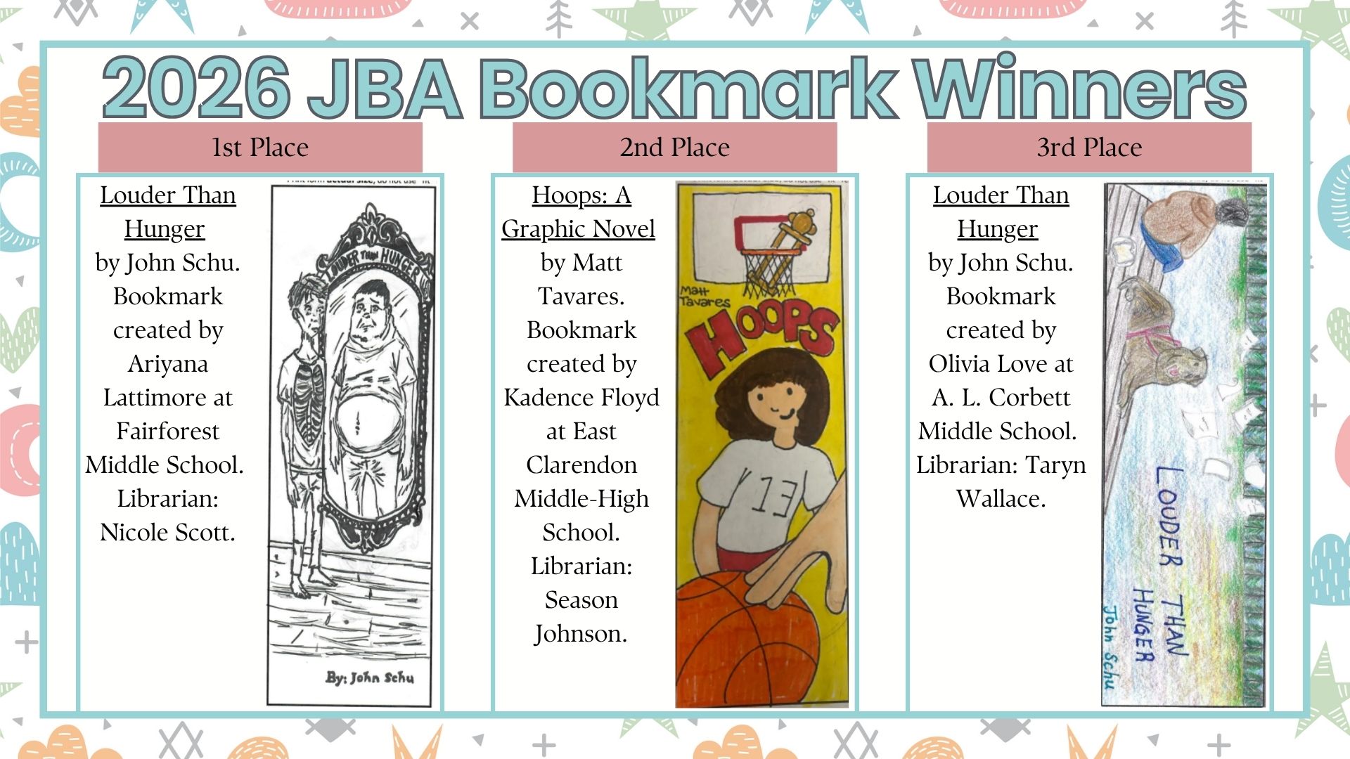 The deadline for entry into the 2025-2026 Book Award Bookmark contest is March 4, 2026.